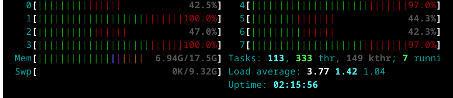 And as we can see the got better performance by using fewer cores for future, due the RAM capacity limit, when using only 4 cores and increasing the number of task per core we can see the time needed to complete the 2k samples it’s reduced as it didn’t use the SWAP memory while running the process, as we can see in the next screenshot.