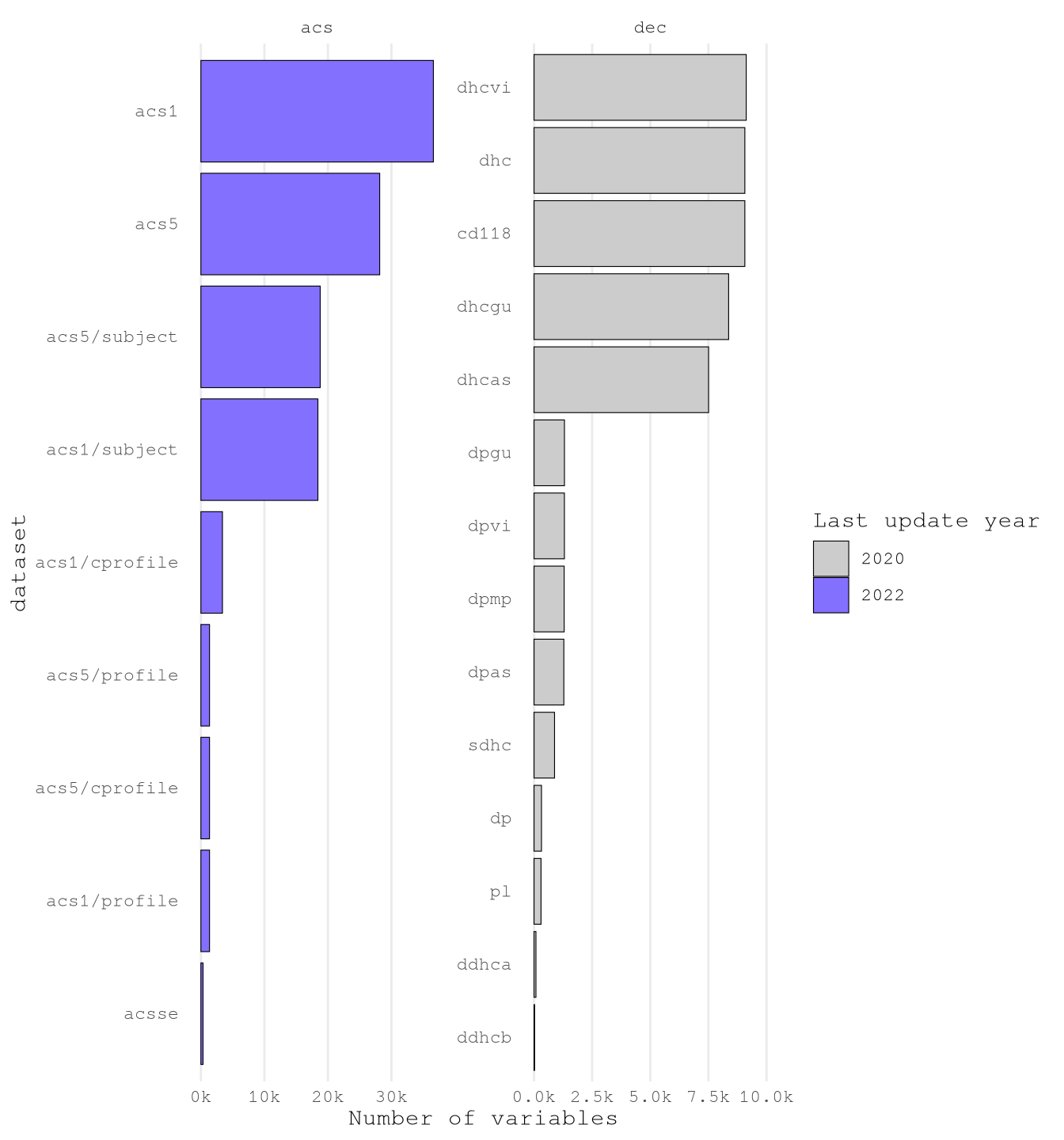 Based on the tidycensus documentation we have the below tables available for exploration.